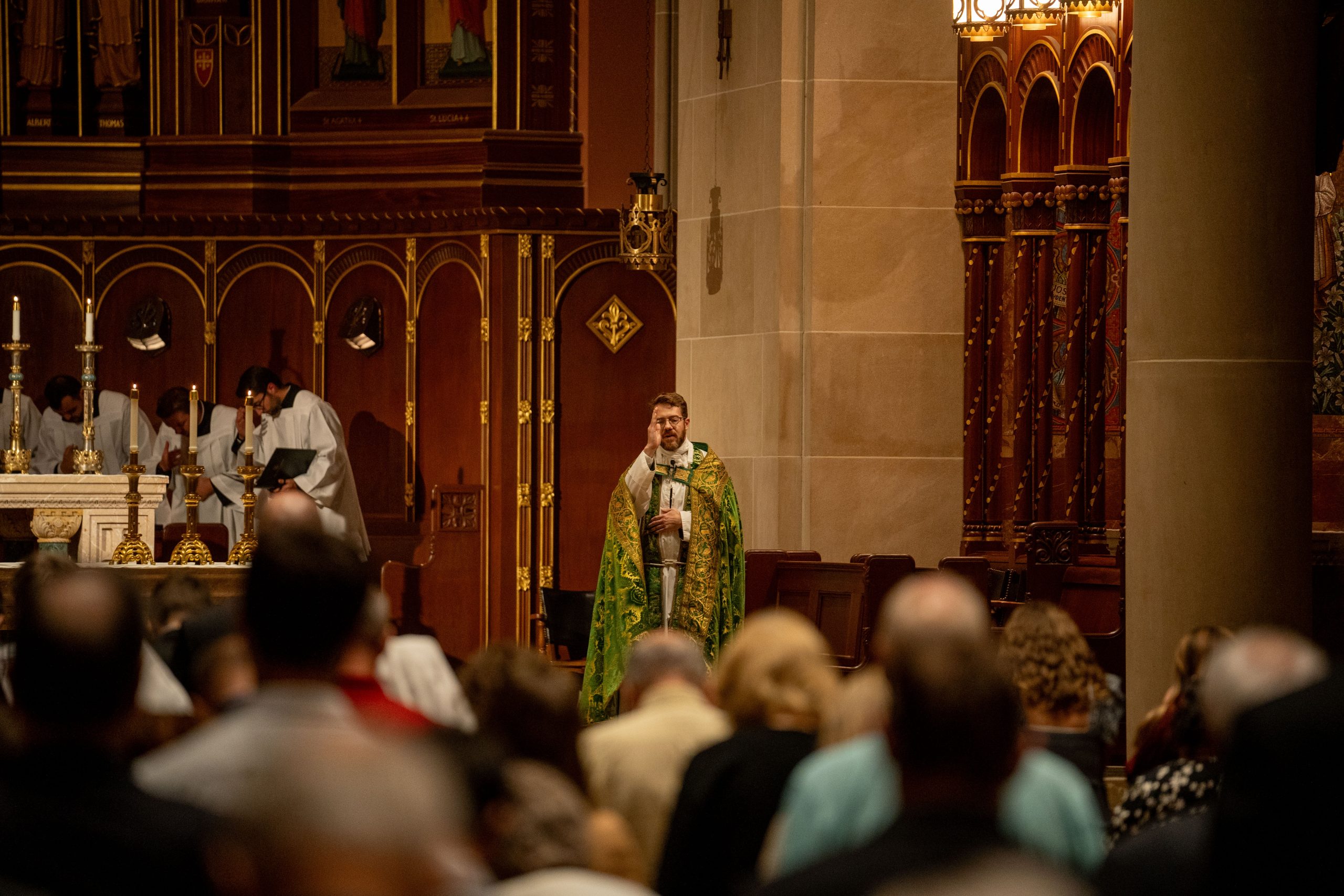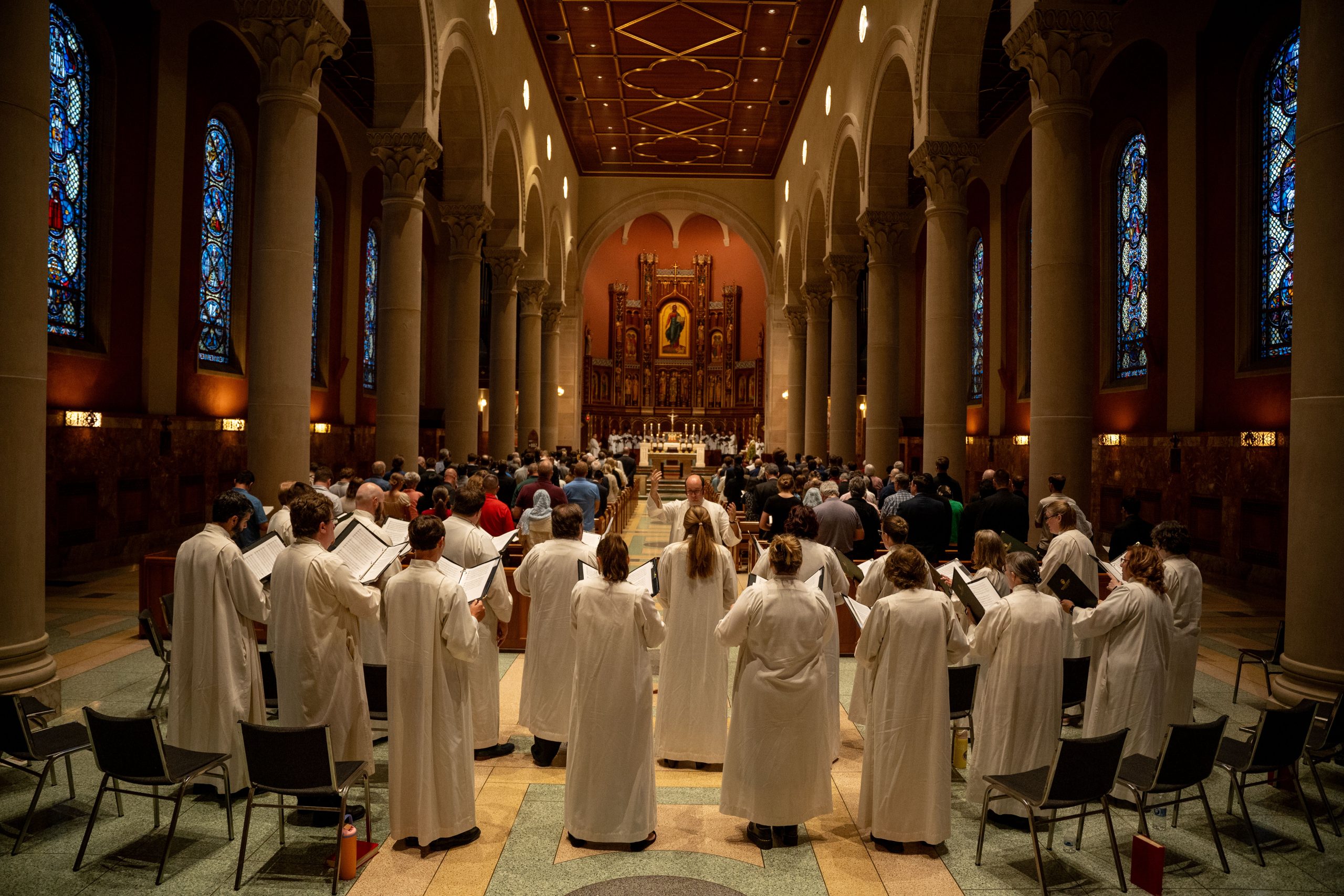 Following was the Solemn Vespers, with Rev. Peter A. Langenkamp, S.S.L. serving as the presider. The evening featured both the Athenaeum Chorale and the Mount St. Mary’s Latin Schola. Please see the video below to see the Opening Procession featuring Dr. Holman at the Athenaeum Chorale.