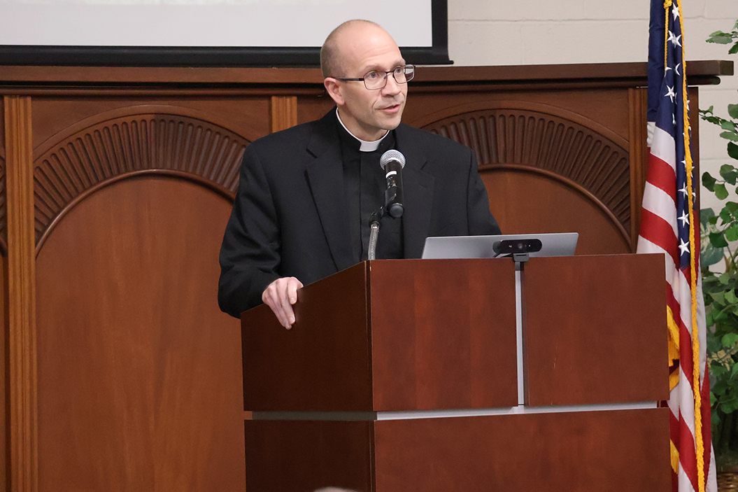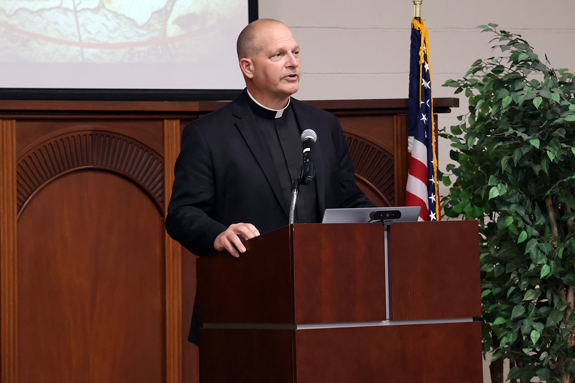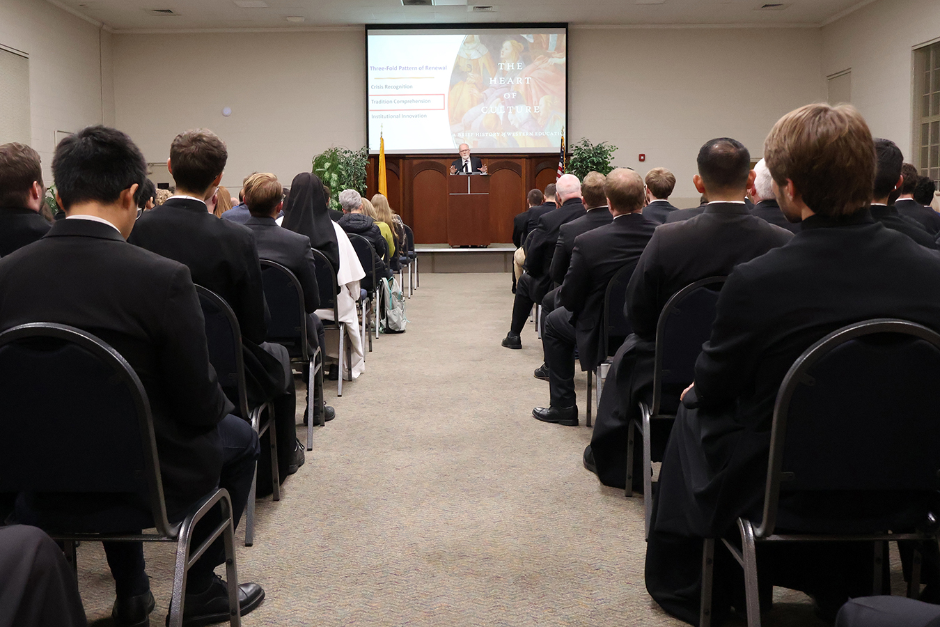 Mount St. Mary’s Seminary & School of Theology (MTSM) welcomed Dr. Michael Naughton, the Director of the Center for Catholic Studies at the University of St. Thomas in Saint Paul, Minnesota, for its annual LeBlonde Fall Lecture on Wednesday (November 13) evening.