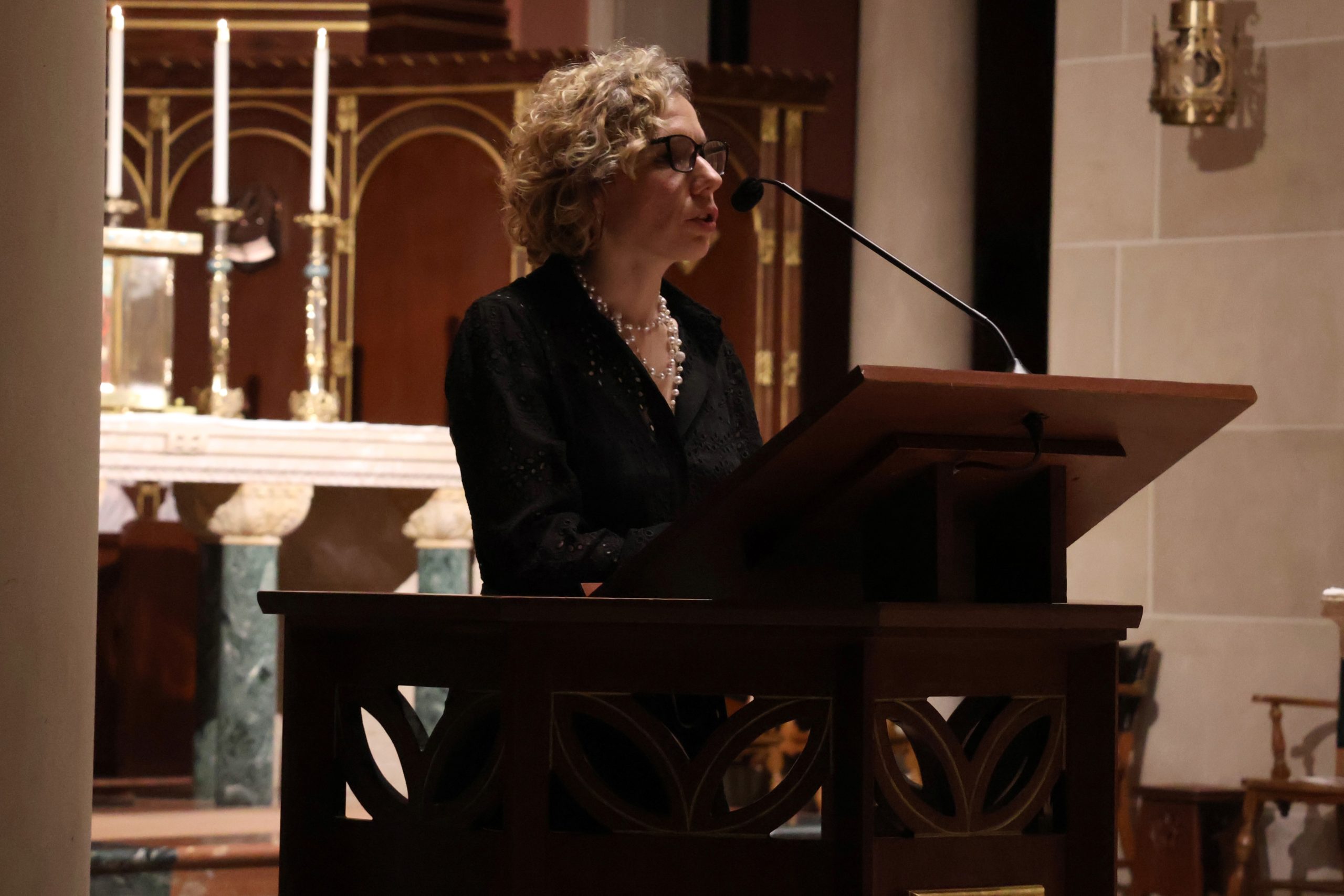 The evening began with Dr. Simental’s organ recital, which featured works by de Gringy, Bach, Dupre, Latry and Grassi. Multiple times throughout her performance, Dr. Simental was accompanied by the Mount St. Mary’s Latin Schola.