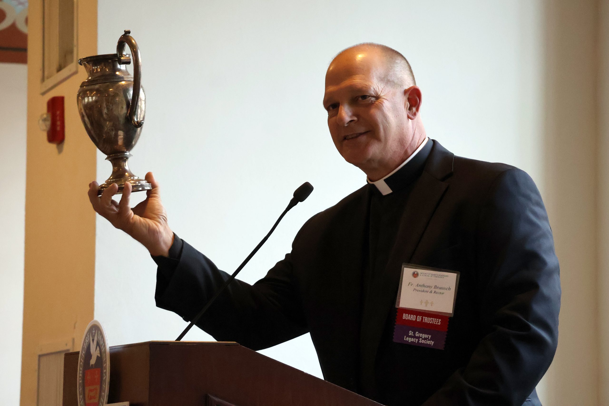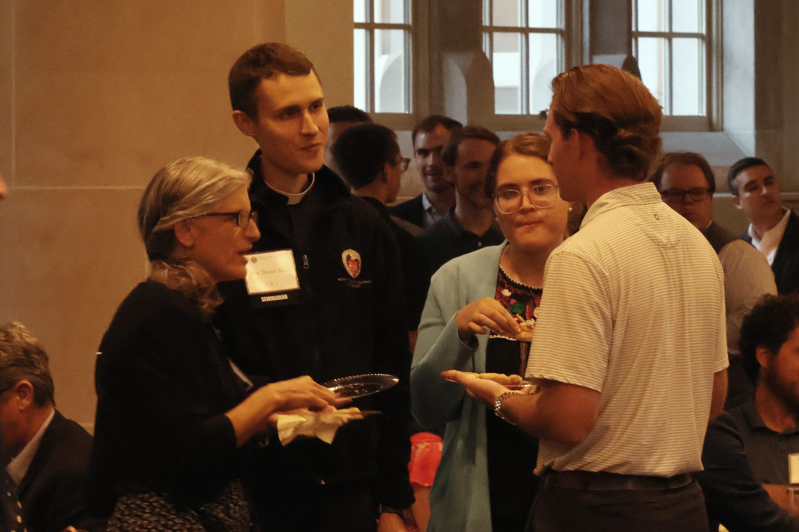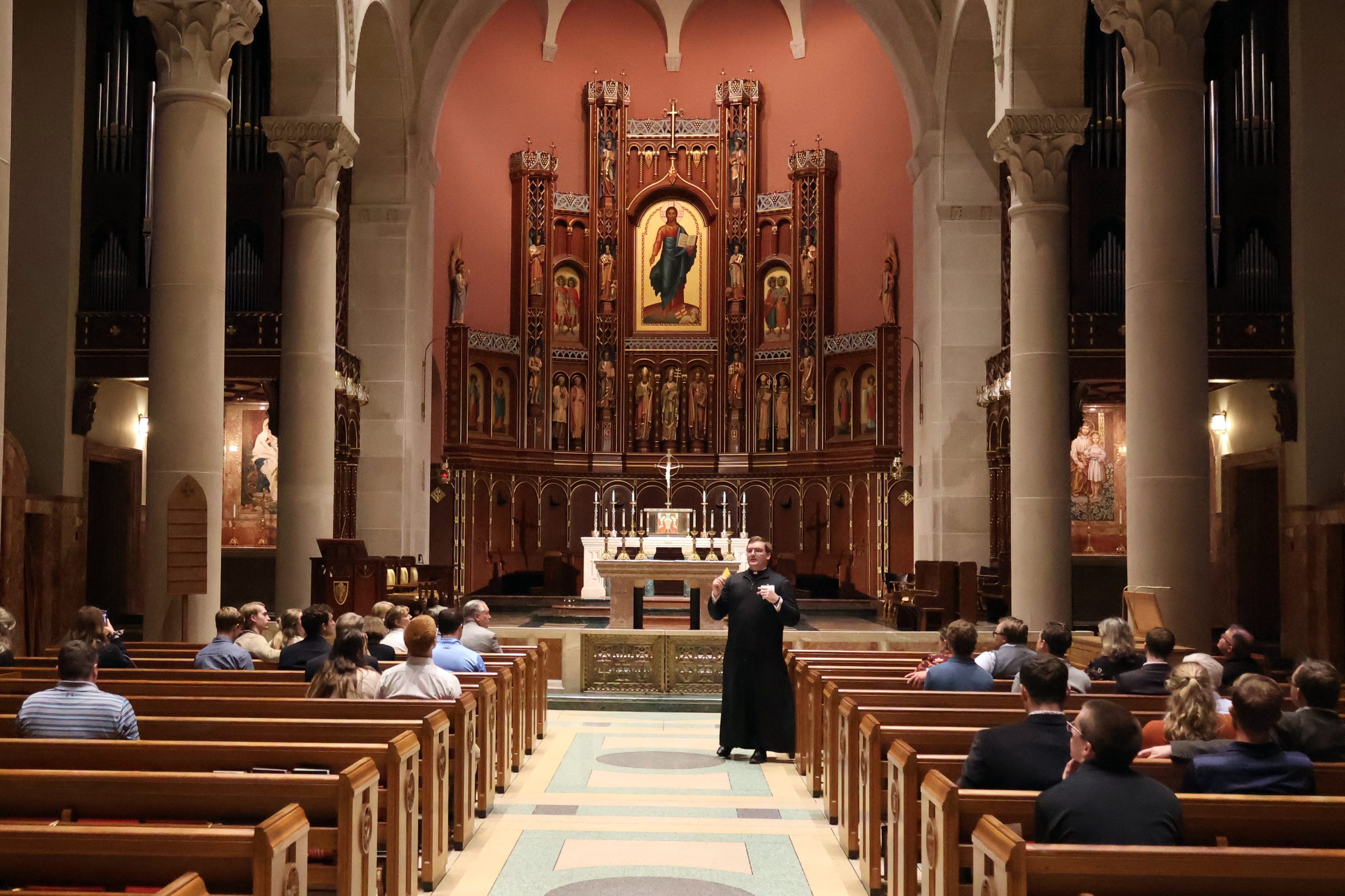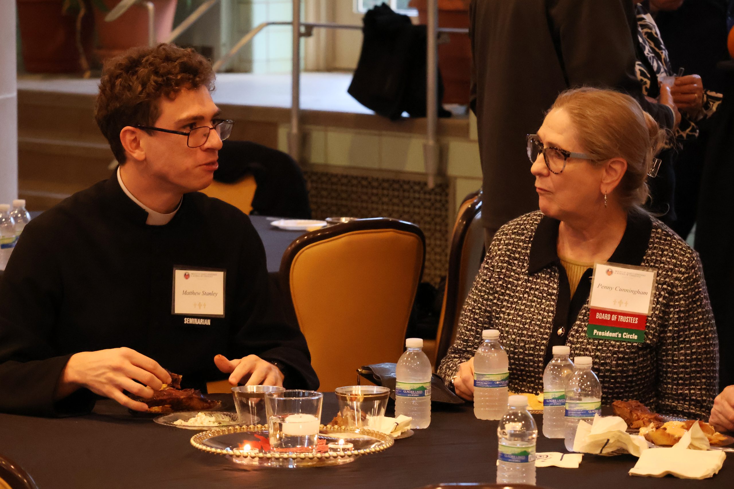 Attendees heard from Eastside Catholics Pastor Rev. Jamie Weber (a 2004 MTSM graduate) and Parochial Vicar Alex Dugas (a 2023 MTSM graduate) about what the Seminary meant to them. The Very Rev. Anthony R. Brausch, President & Rector of MTSM, spoke about ways to assist in supporting the Seminary. In addition, seminarians provided tours of the Main Building to those who were first-time visitors to the Seminary grounds.
