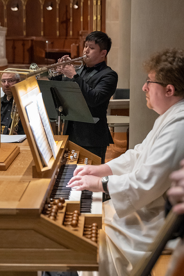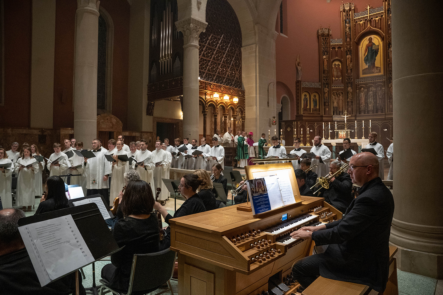 The evening was years in the making, as the work of planning, designing, fundraising, building, shipping, building again and the final voicing of the organ, completed last week by the organ builder Martin Pasi, culminated in Sunday’s event. Along with The Athenaeum Chorale, The Athenaeum Chorale Chamber Orchestra and The Mount St. Mary’s Latin Schola, MTSM welcomed Dr. Michael Unger from the University of Cincinnati Conservatory of Music as the Guest Organist.