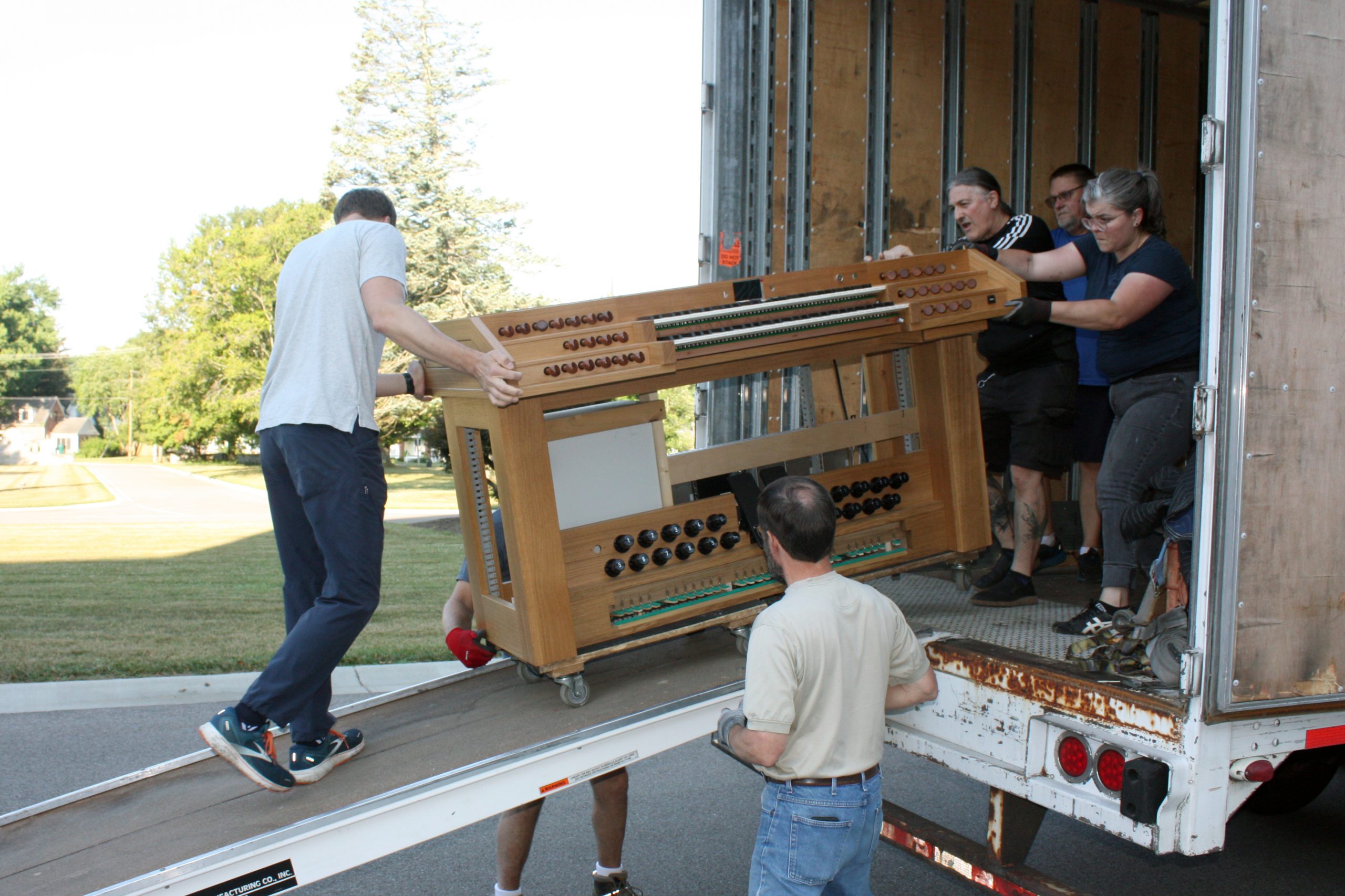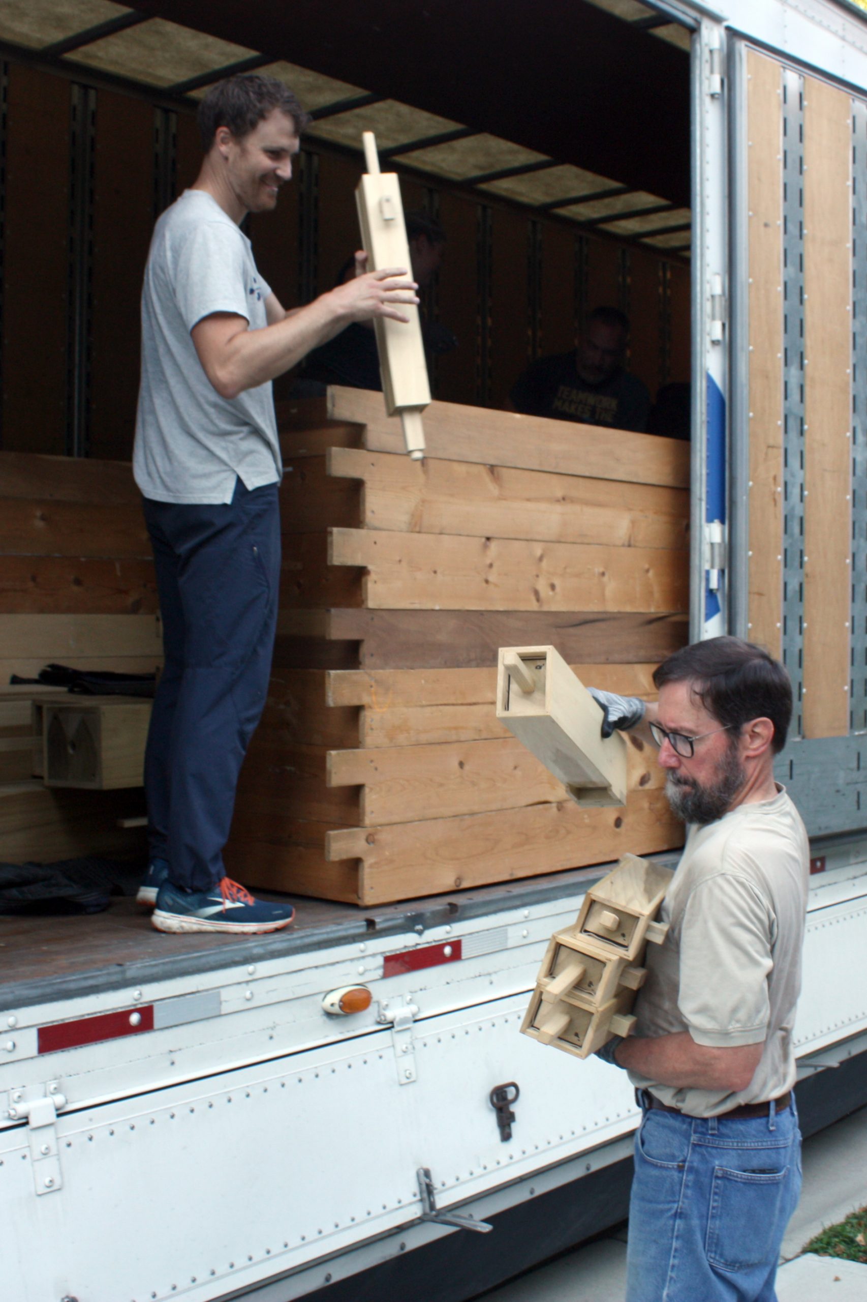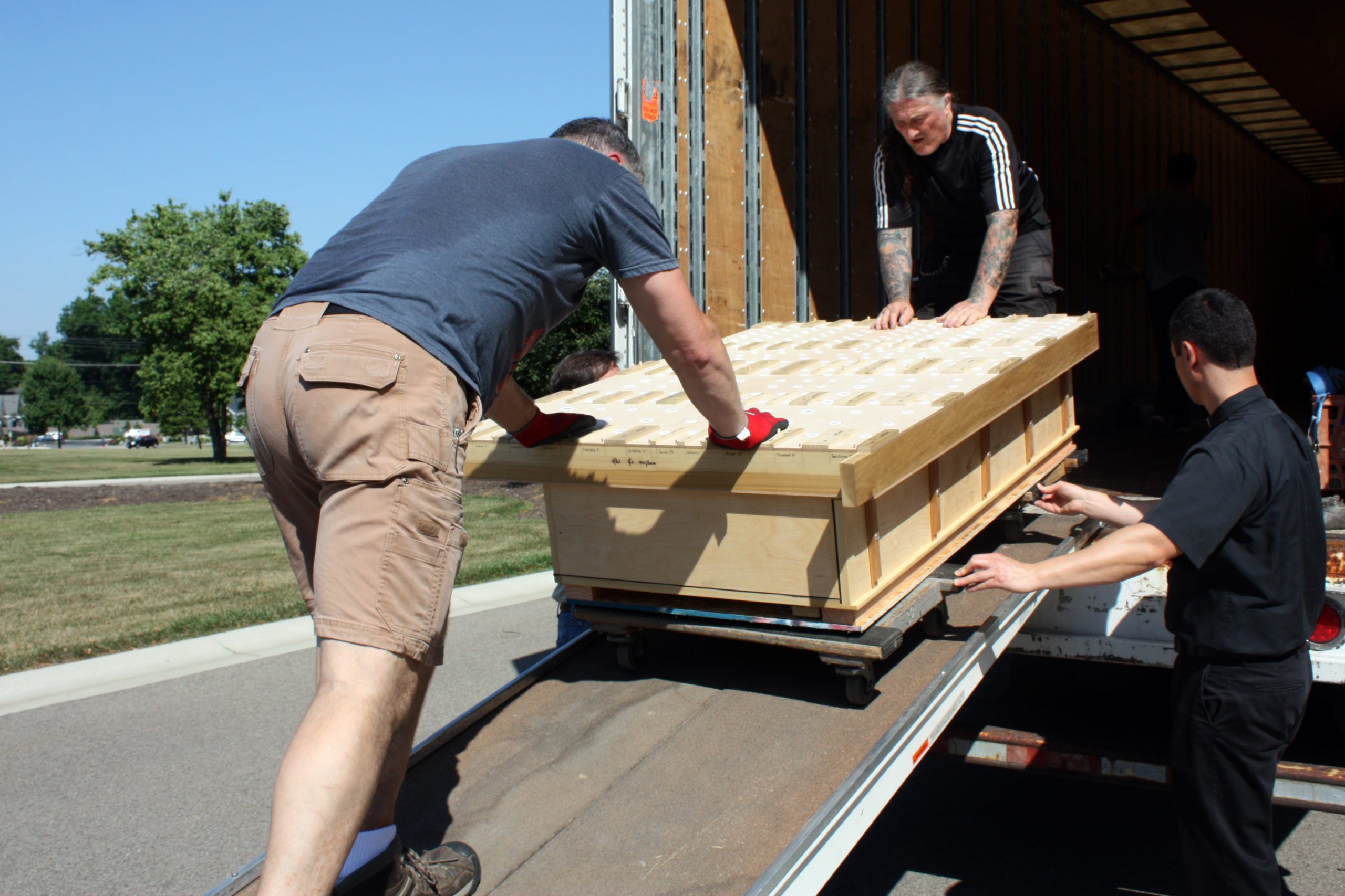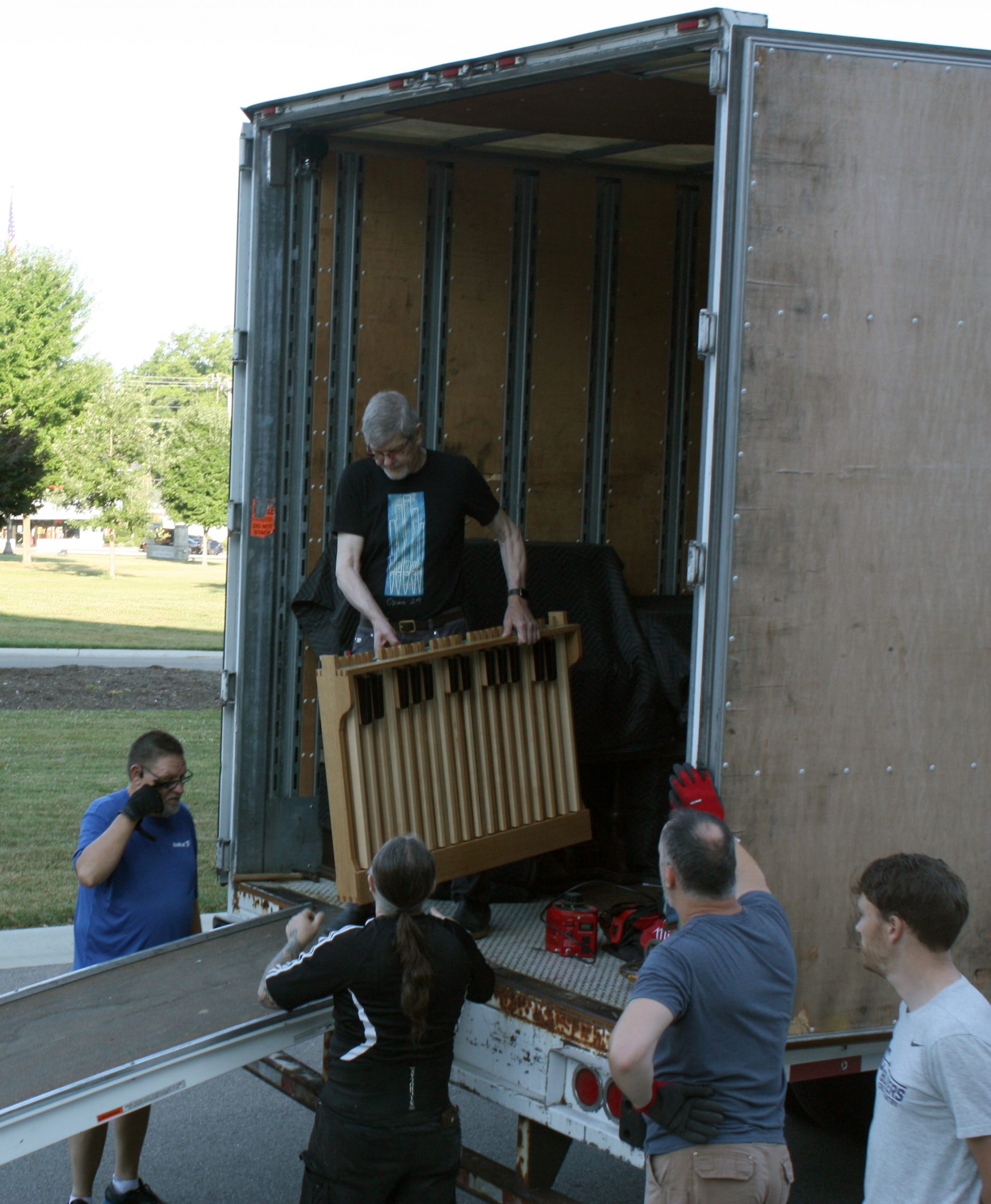 Pasi and his five-person team were assisted in unloading the semi-truck by MTSM faculty and staff, donors and musicians and chorale members from the Sacred Music Institute in unloading the truck. The process helped Pasi and his crew cut over half the time they had previously estimated it would take to unload the truck, with the truck completely unloaded in around three hours.