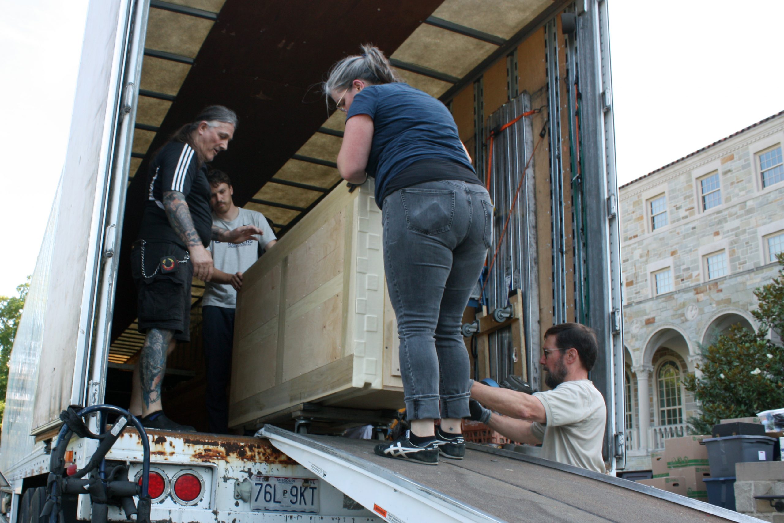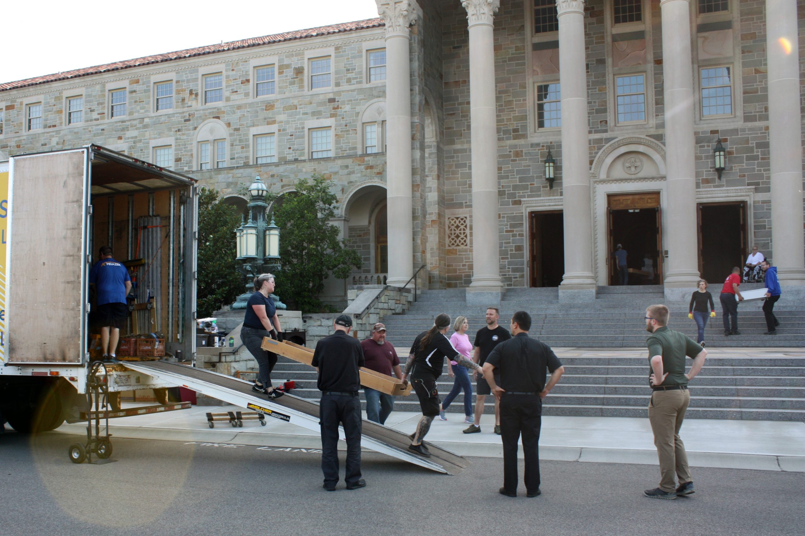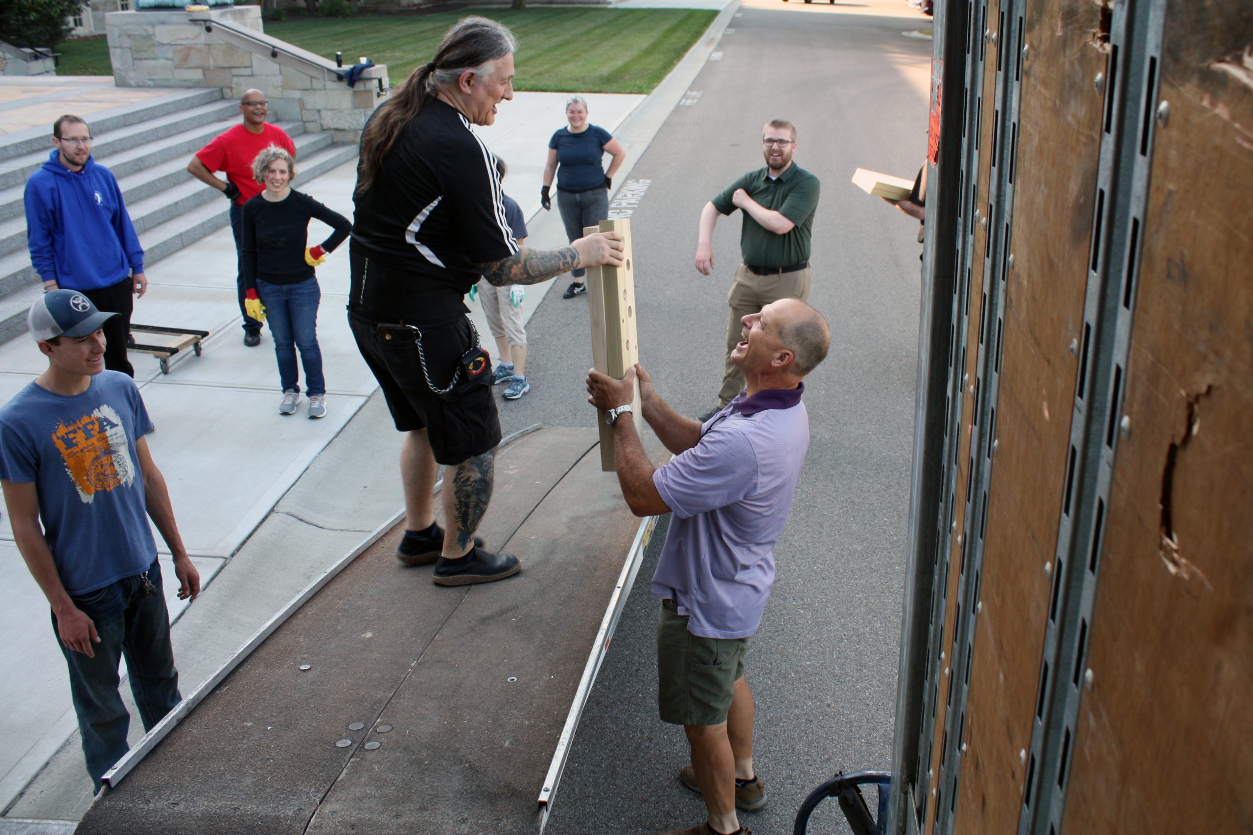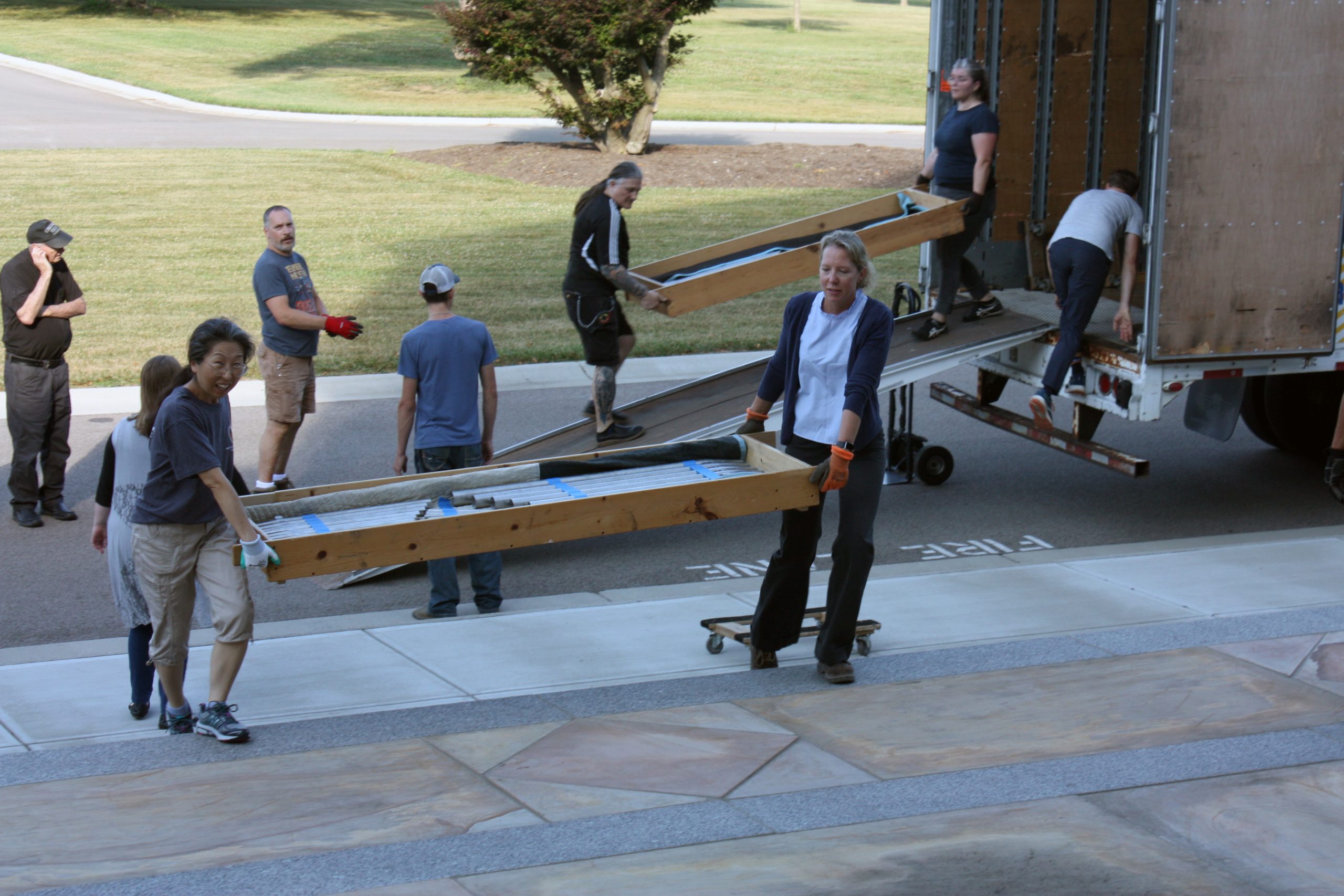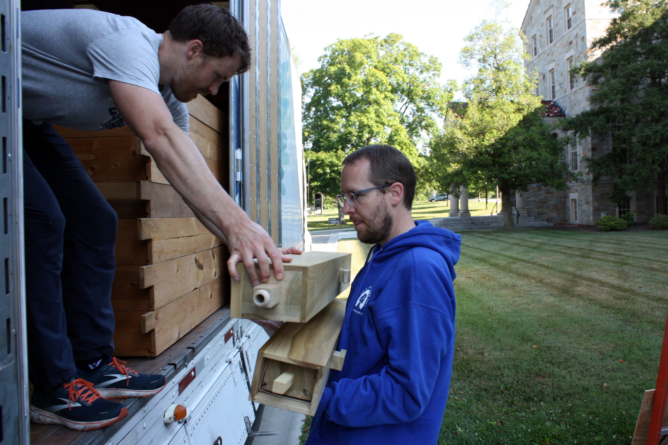 Pasi and his five-person team were assisted in unloading the semi-truck by MTSM faculty and staff, donors and musicians and chorale members from the Sacred Music Institute in unloading the truck. The process helped Pasi and his crew cut over half the time they had previously estimated it would take to unload the truck, with the truck completely unloaded in around three hours.