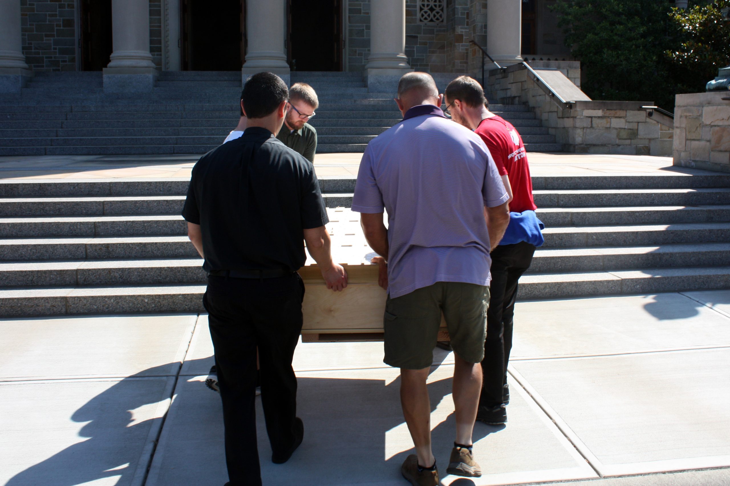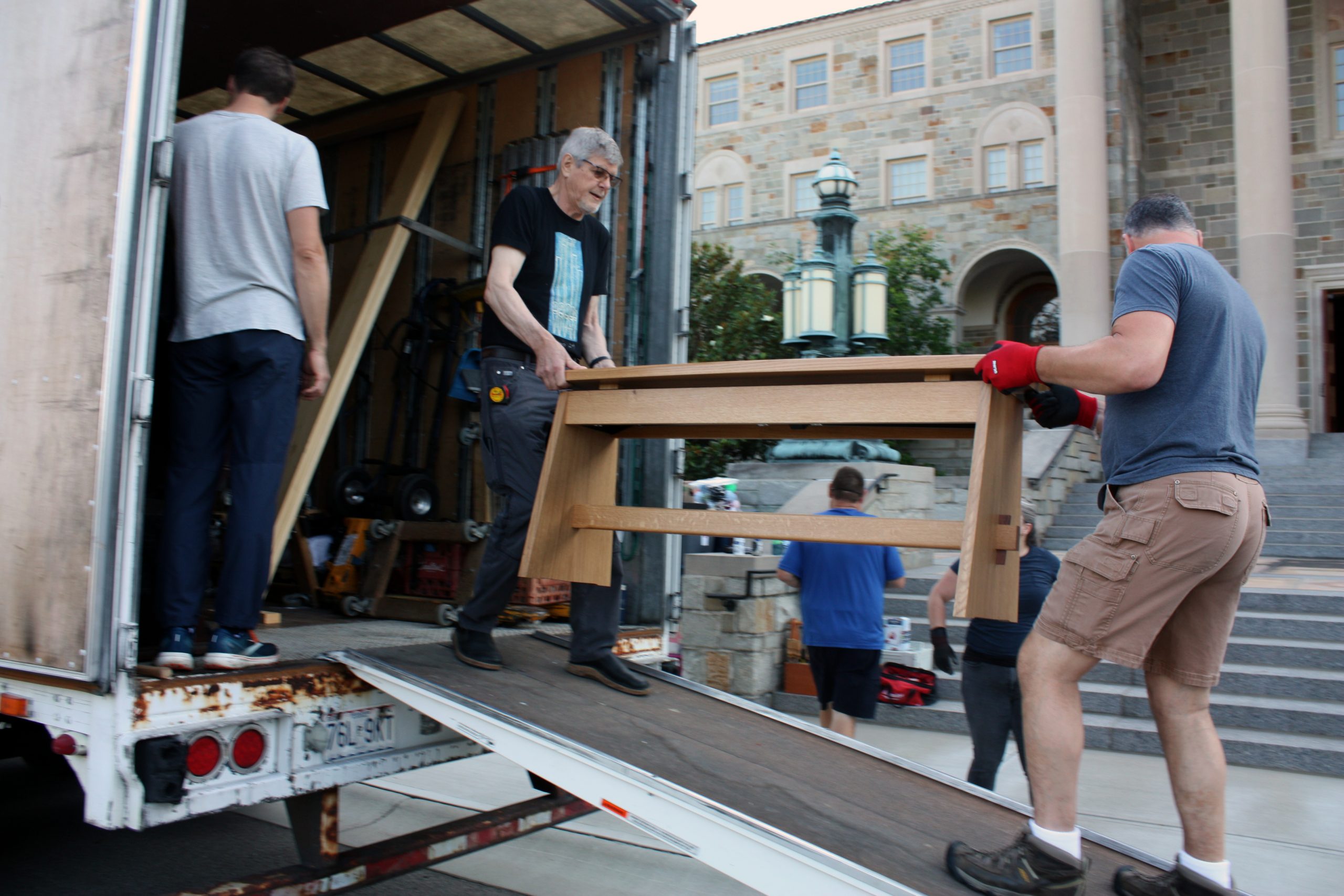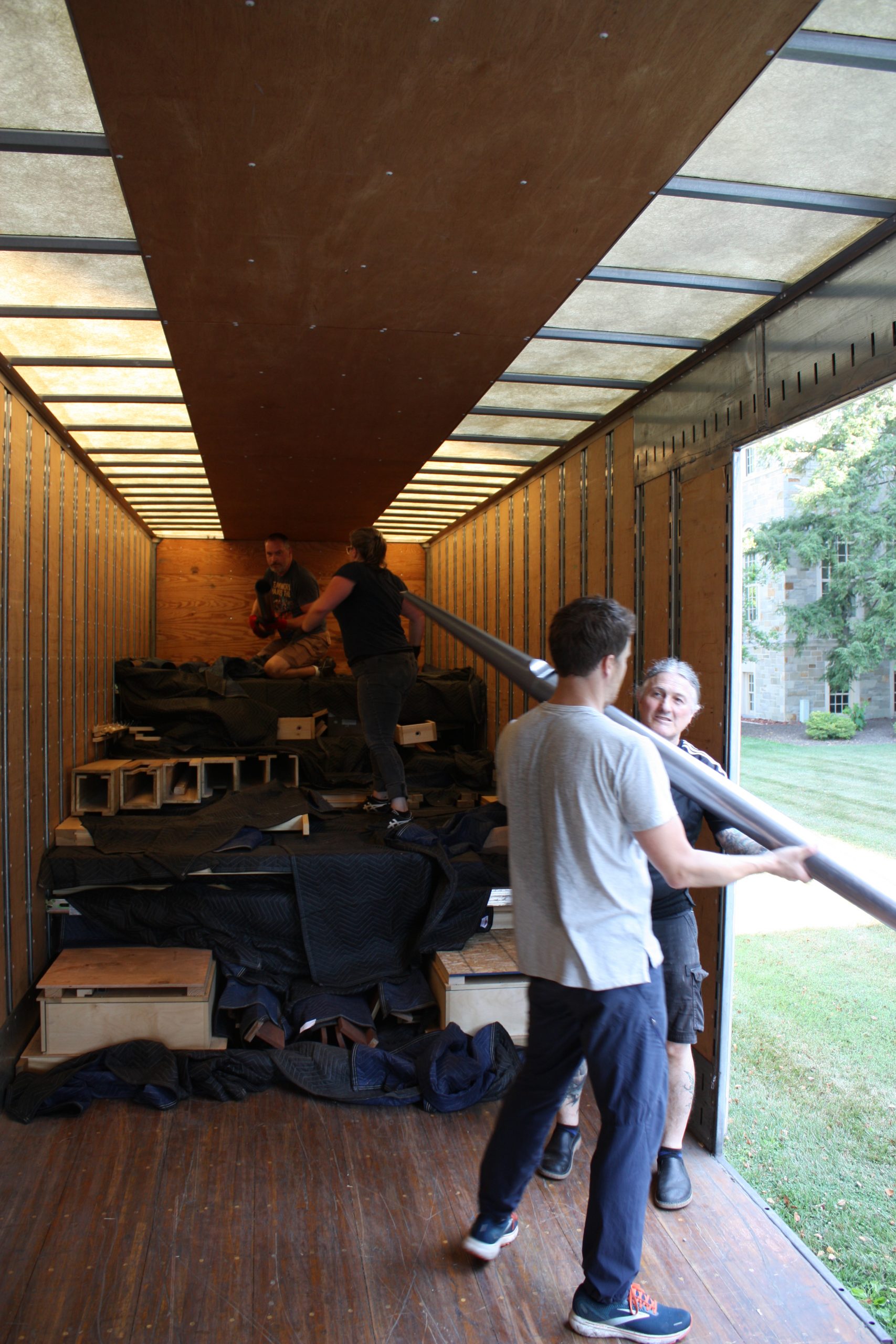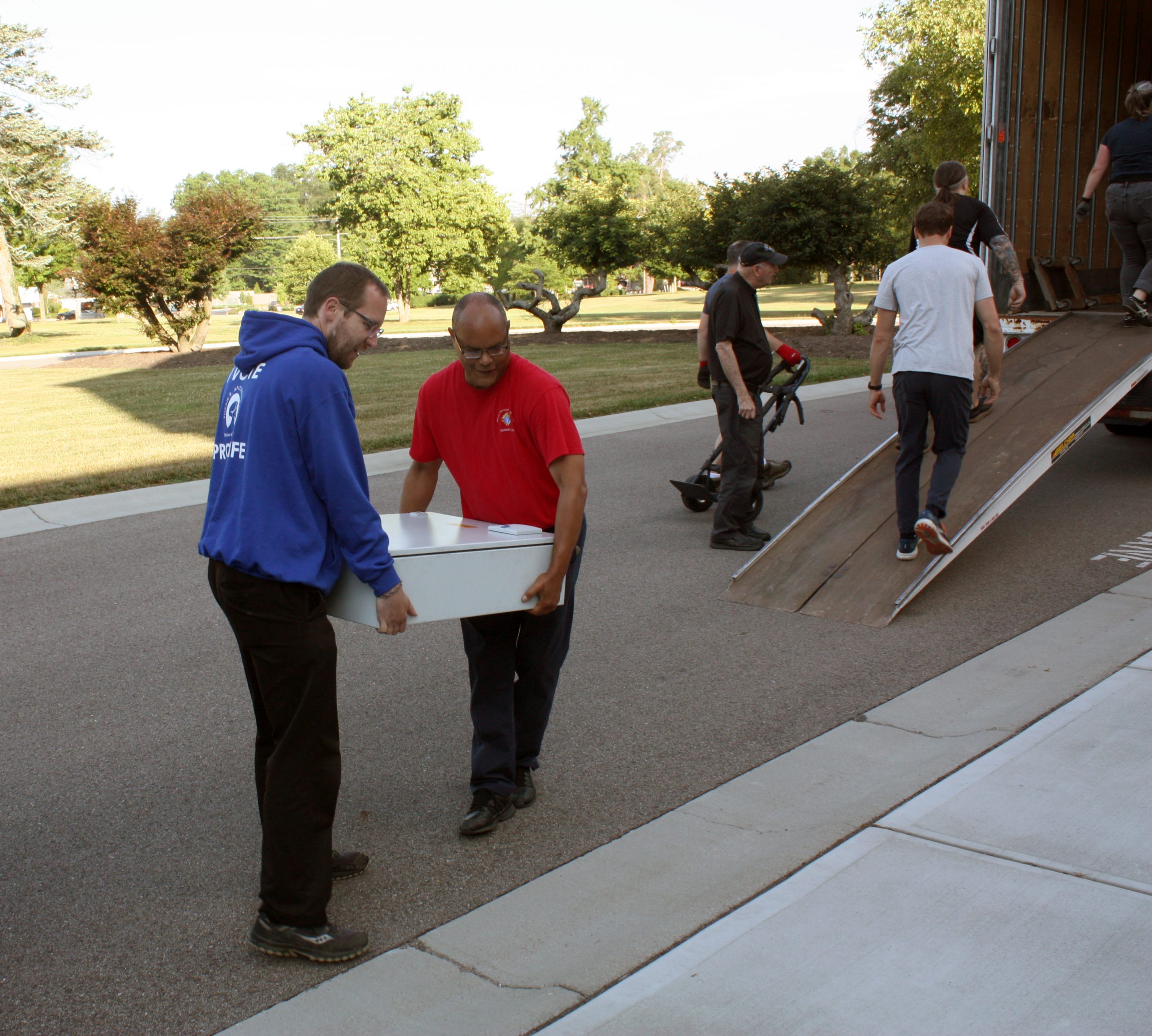 Pasi and his five-person team were assisted in unloading the semi-truck by MTSM faculty and staff, donors and musicians and chorale members from the Sacred Music Institute in unloading the truck. The process helped Pasi and his crew cut over half the time they had previously estimated it would take to unload the truck, with the truck completely unloaded in around three hours.