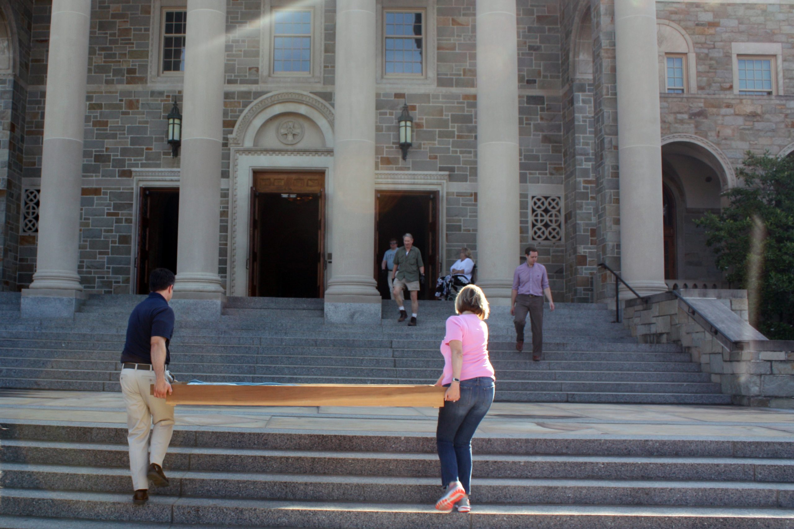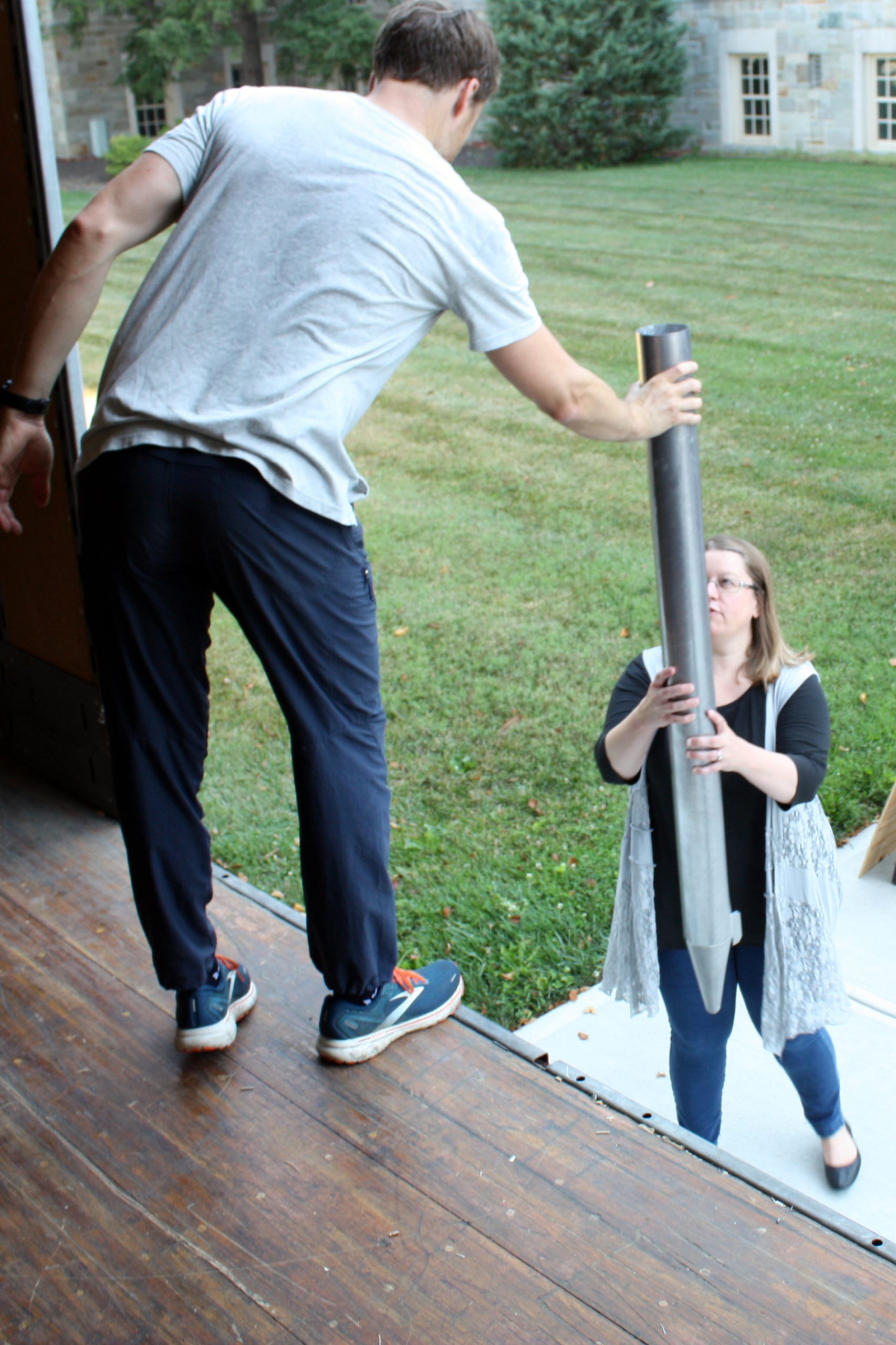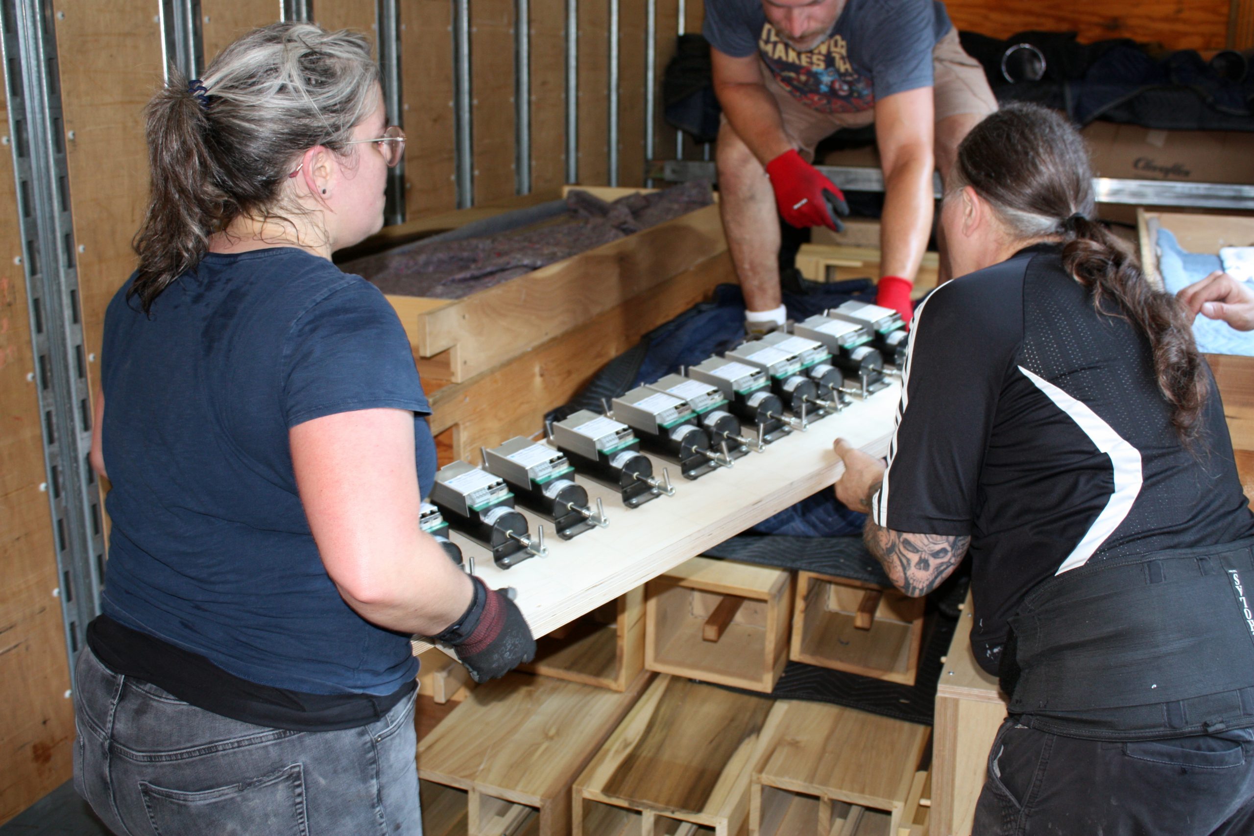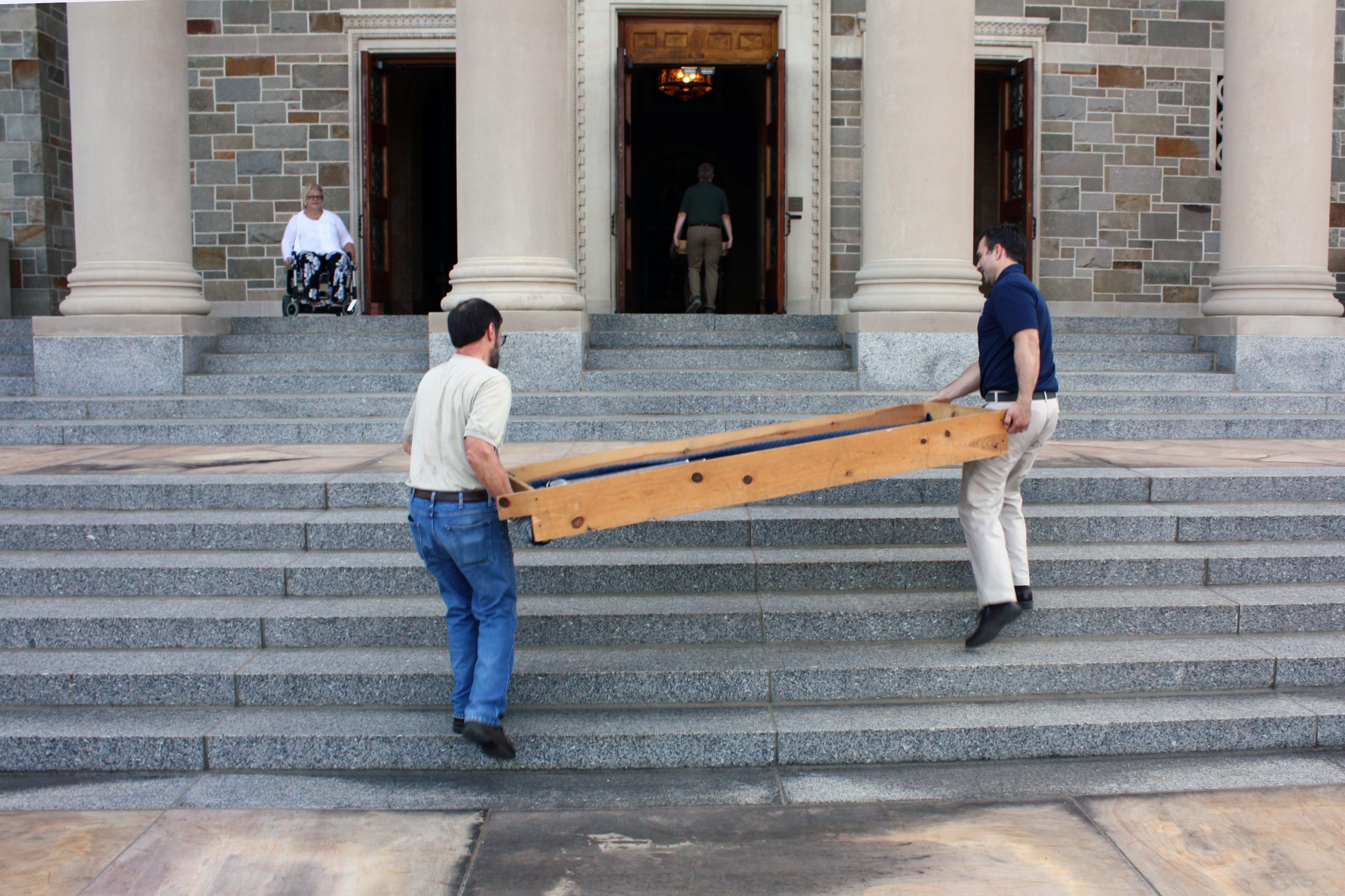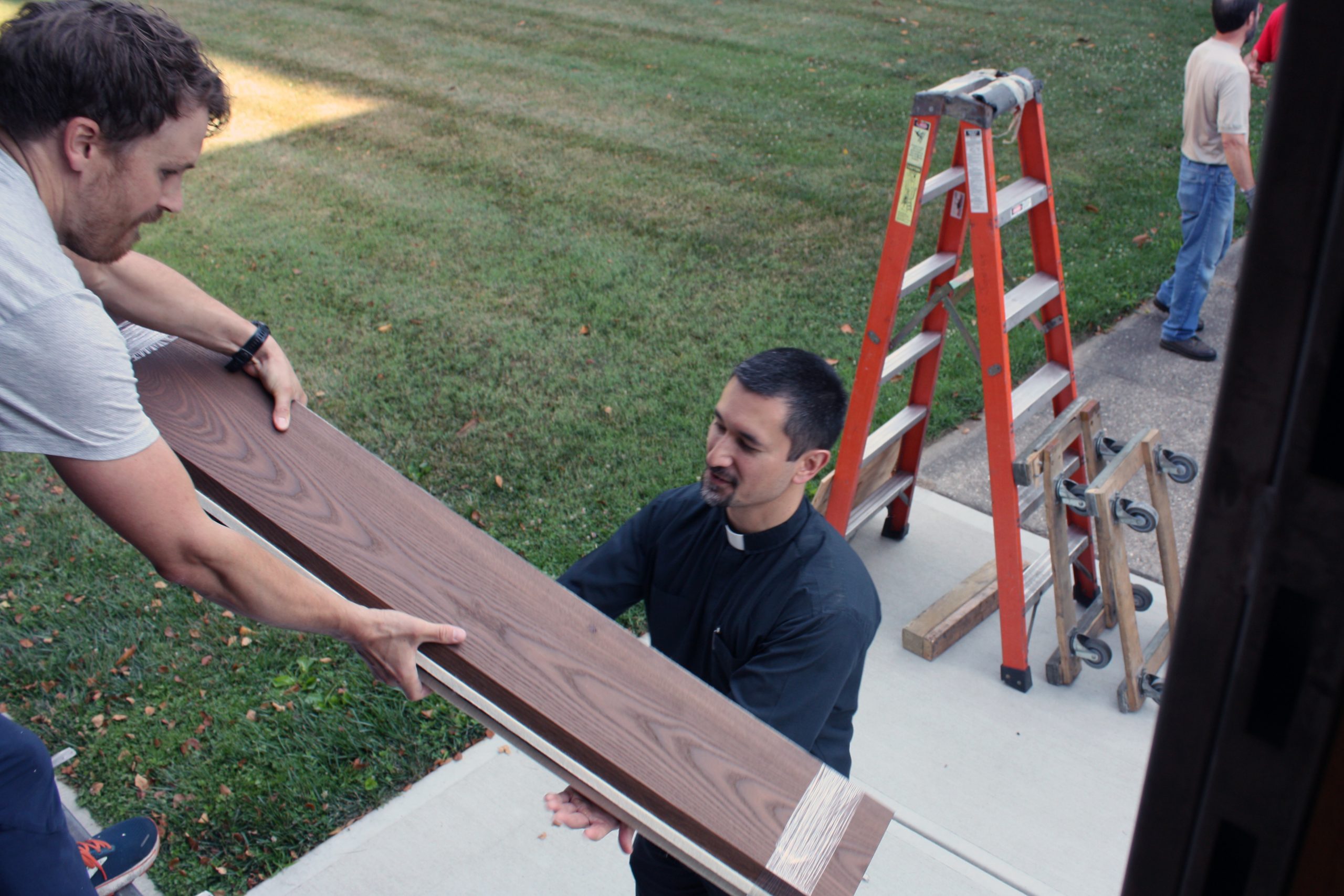 Pasi and his five-person team were assisted in unloading the semi-truck by MTSM faculty and staff, donors and musicians and chorale members from the Sacred Music Institute in unloading the truck. The process helped Pasi and his crew cut over half the time they had previously estimated it would take to unload the truck, with the truck completely unloaded in around three hours.