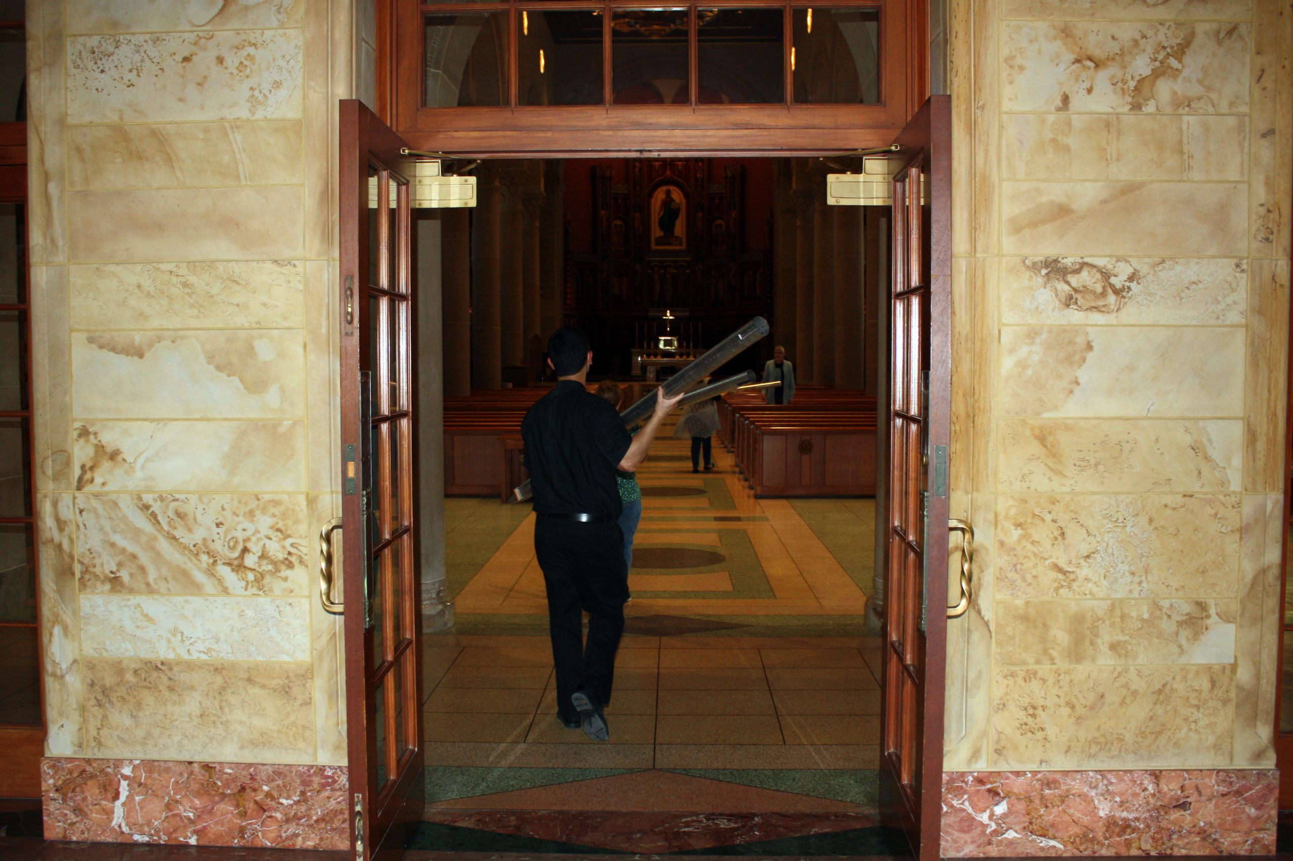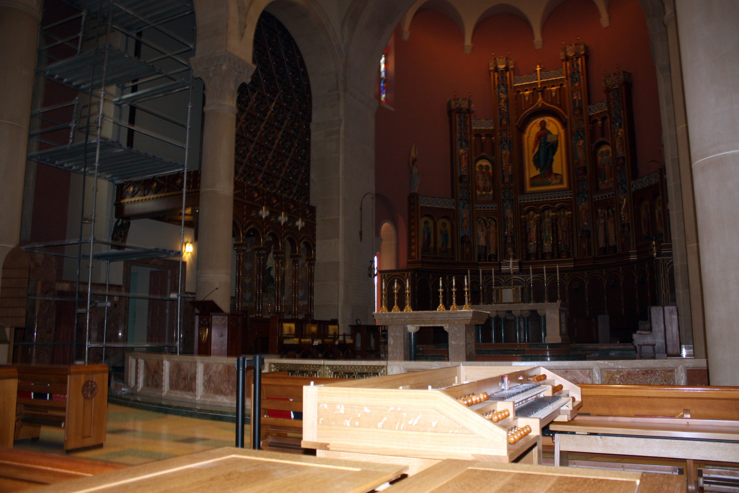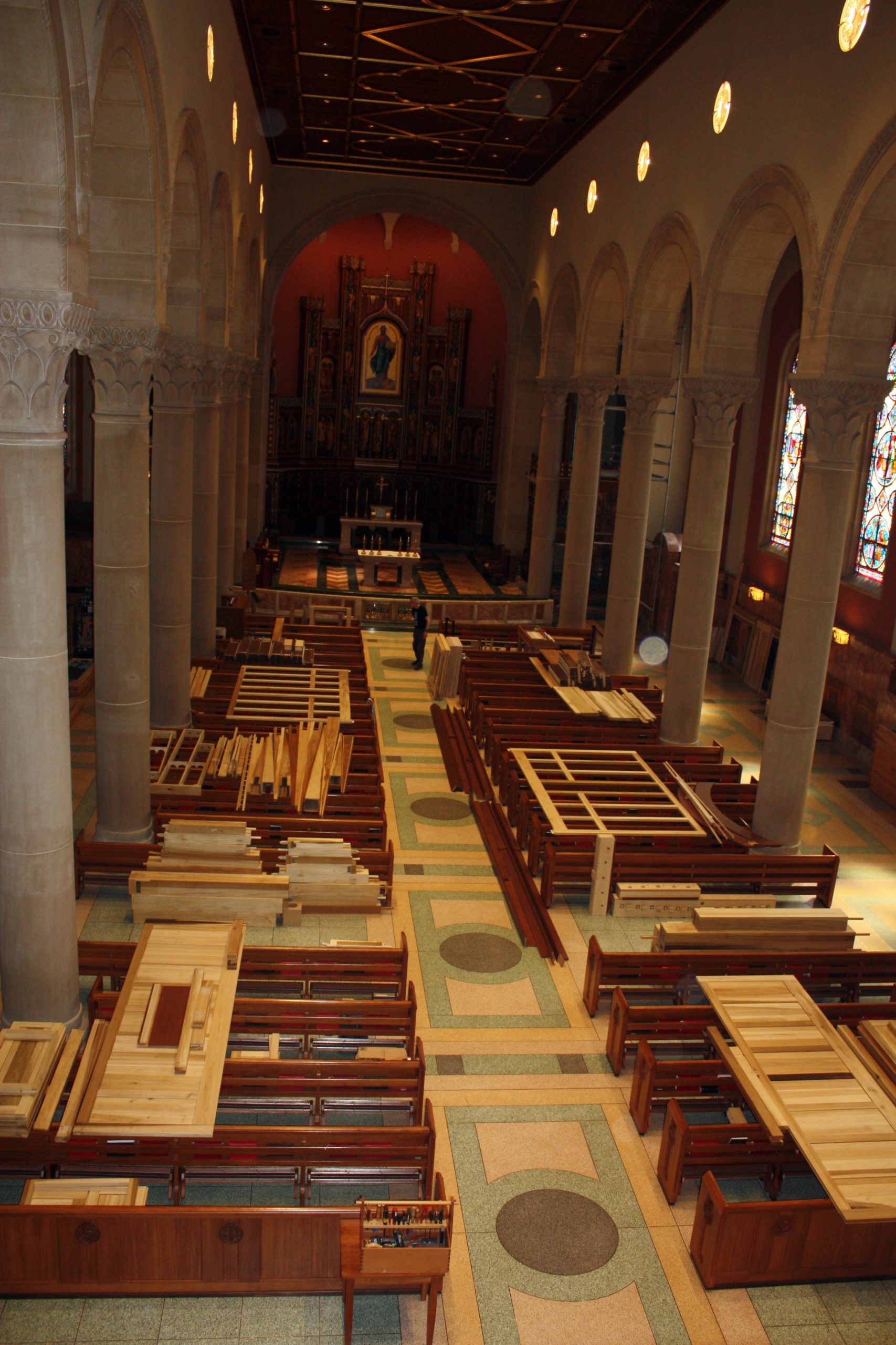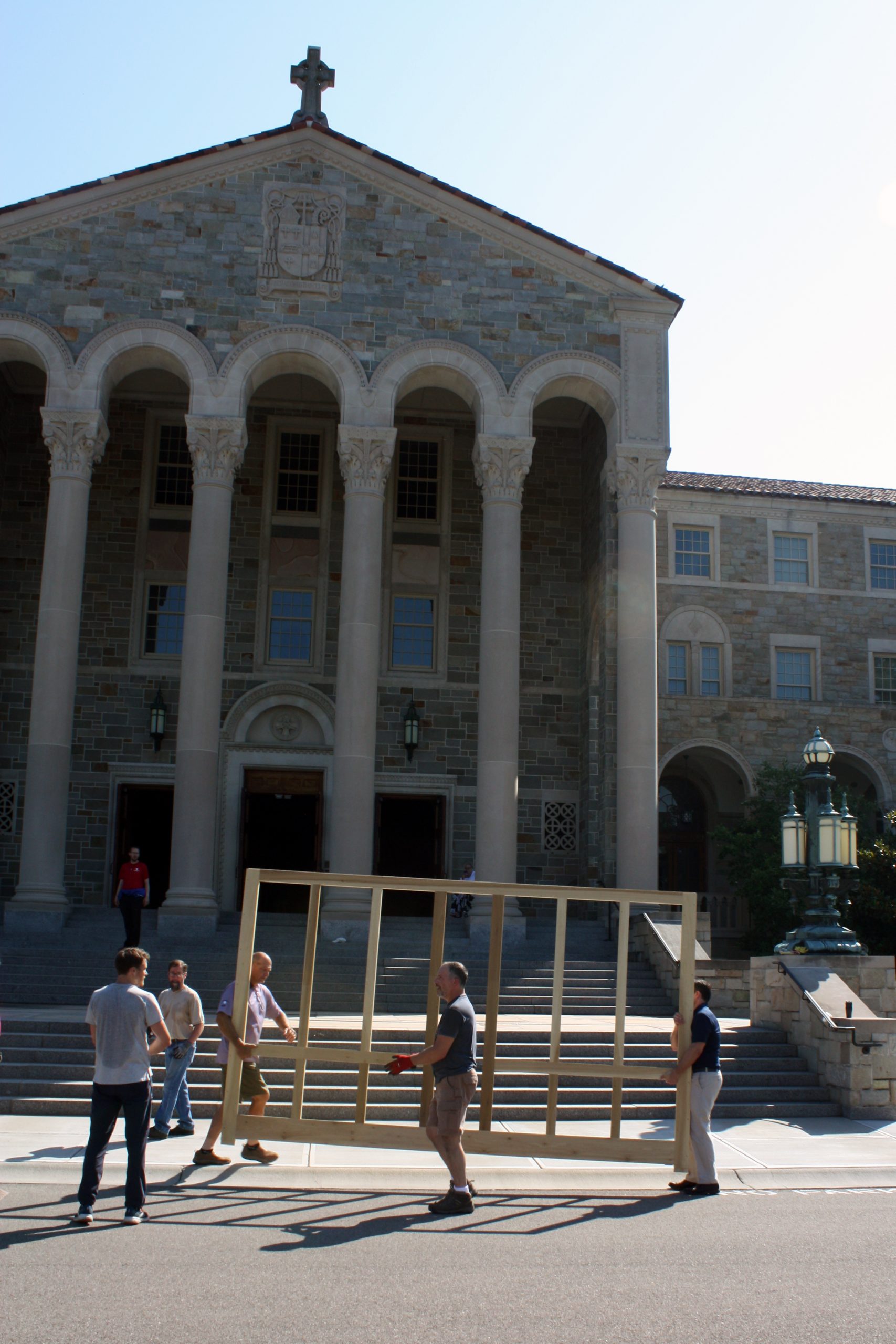 Wednesday was an exciting day at Mount St. Mary’s Seminary & School of Theology (MTSM) as, following years of planning and the help of countless donors and supporters of the Sacred Music Institute (SMI), MTSM’s new Pasi Opus 29 organ arrived from Roy, Washington and was moved into the Chapel of St. Gregory the Great. Master organ builder Martin Pasi and his team have begun the two-week process of installing the organ. Following that, Pasi will stick around to do the voicing process and prepare the organ for its first uses and events in the coming month.